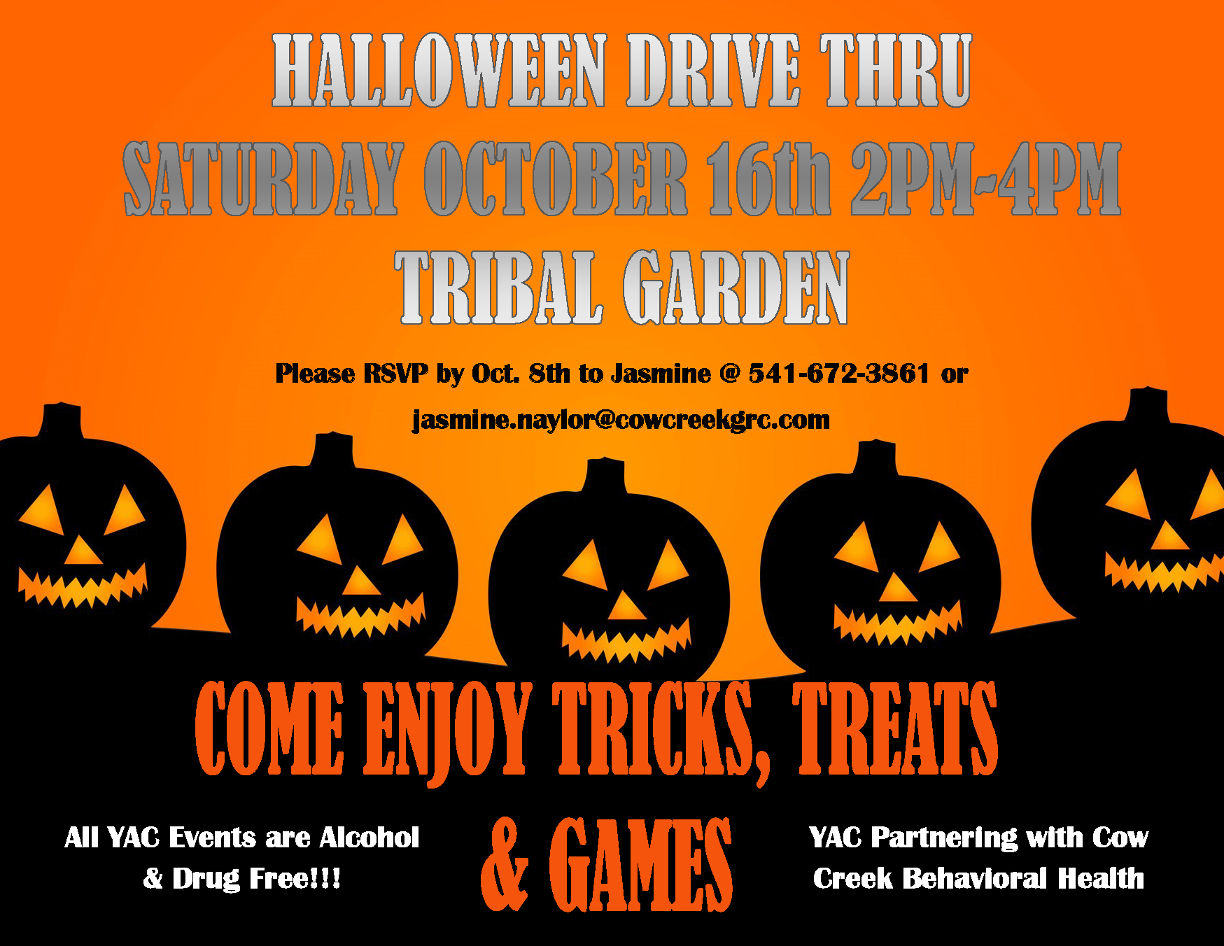 The Youth Activities Committee is partnering with Cow Creek Behavioral Health to present a Halloween Drive-Through event at the Tuú Yap’a Xumá Tribal Gardens. Come enjoy tricks, treats, and games!