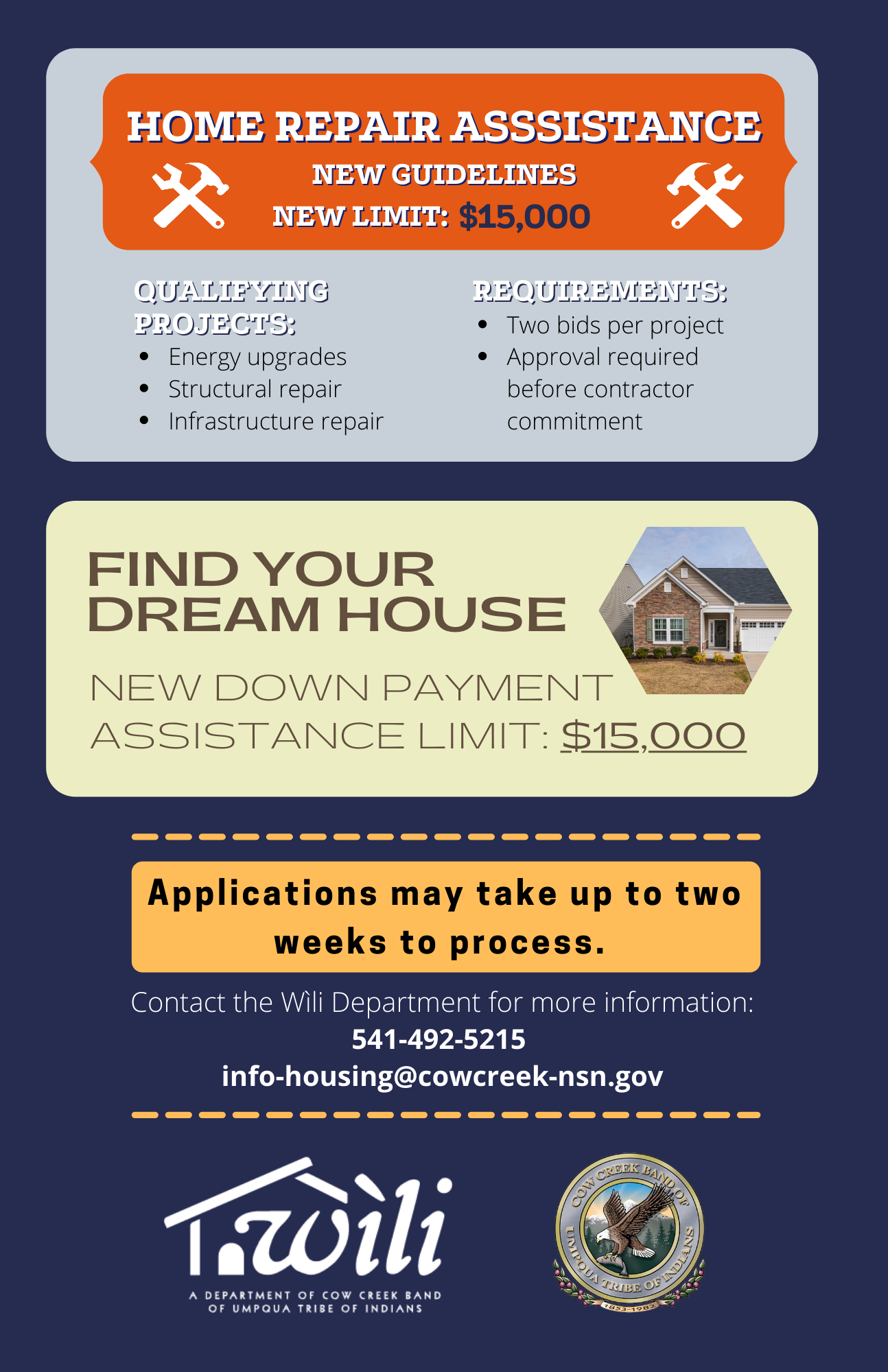 Recently, Wìli announced that limits for both the Down Payment Assistance and the Home Repair Assistance programs had increased to $15,000.