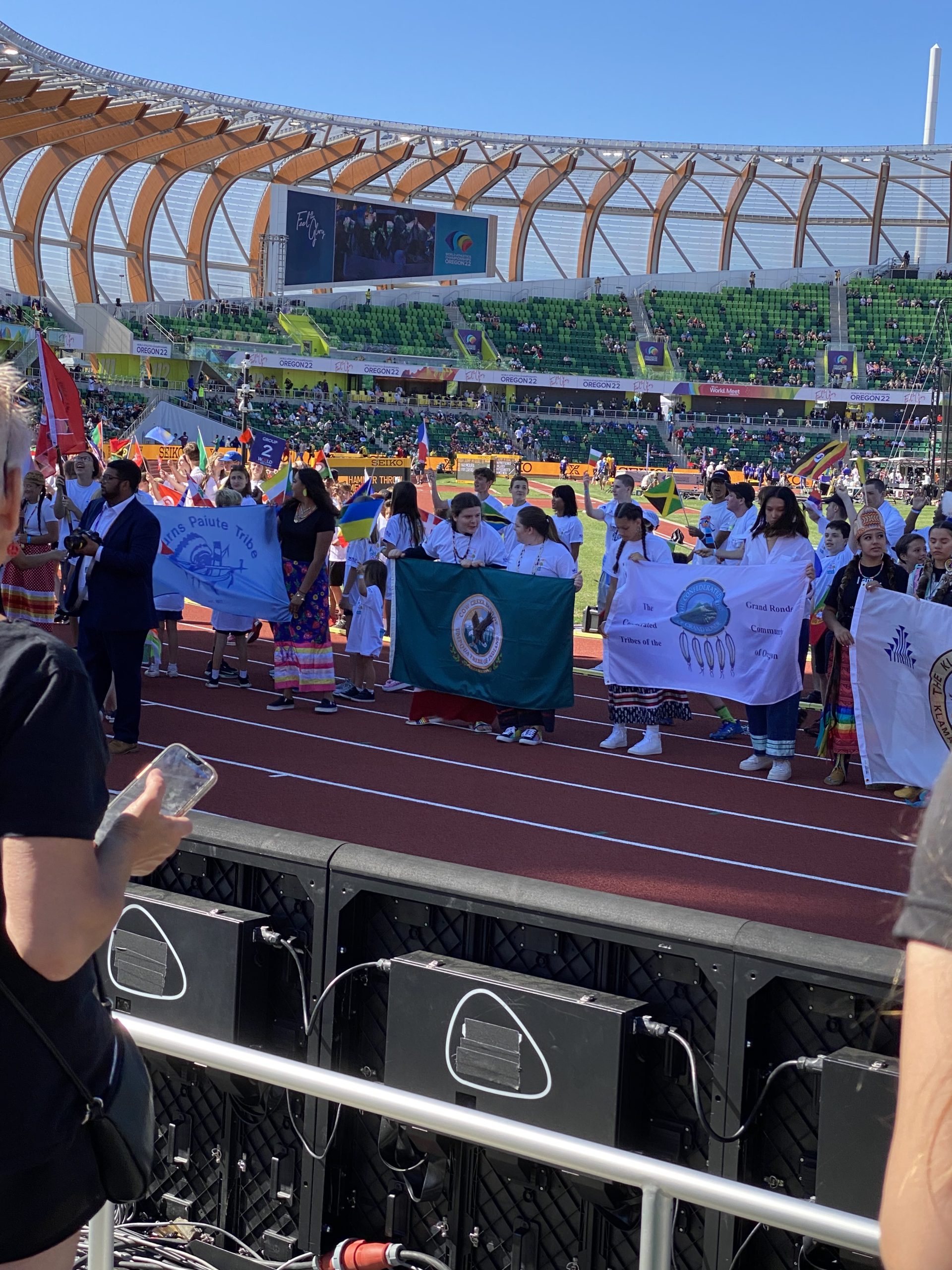 Oregon’s nine federally recognized Tribes participated in the opening ceremonies of the World Athletic Championships at Hayward Field in Eugene on Friday.