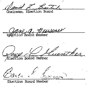 Pursuant to an order issued on May 17, 1991, by Ronal Eden, Director, office of Tribal Services, the foregoing Constitution of the Cow Creek Band of Umpqua Tribe of Indians, Oregon, was submitted to the qualified registered voters of the Tribe and was on July 8, 1991 duly adopted in a vote of 178 for, and 35 against, in an election in which at least thirty percent (30%) of the 252 (number) entitled to vote, cast their ballots in accordance with Section 16 of the Indian Reorganization Act of June 18, 1934 (48 Stat. 984), as amended.