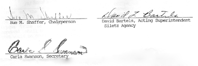 David Bartels, Acting Superintendent, Siletz Agency (signed).